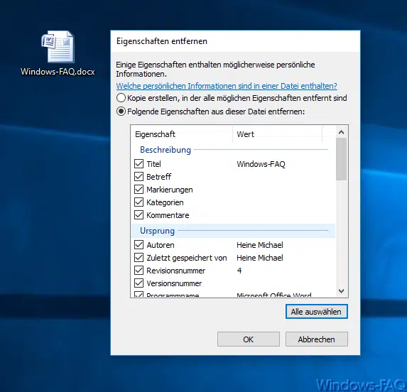 Hier nachfolgend der Auszug von Metadaten einer Word-Datei (windows-faq.docx):