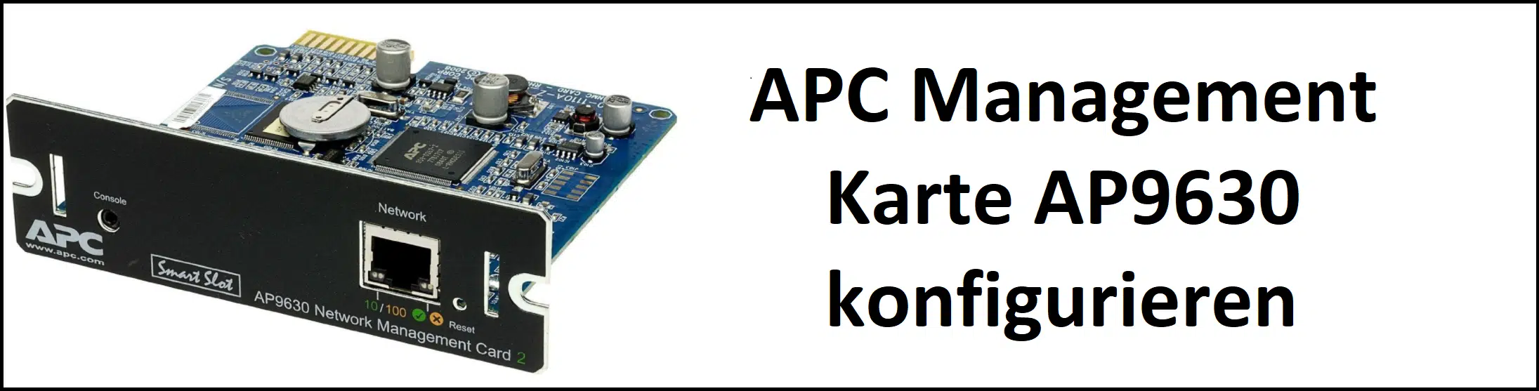 Wir haben bereits mehrere APC Management Karten in Betrieb genommen, die AP9630 (APC Management Card 2) scheint allerdings relativ neu zu sein und bereitet doch erstaunlicherweise einige Probleme. Sie bietet zumindest nun die Möglichkeit, mit einem speziellen seriellen Kabel, welches im Lieferumfang enthalten ist, eine Erstkonfiguration durchzuführen.