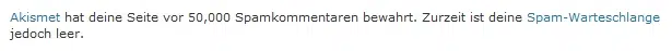 Nur eine Info in eigener Sache. Heute war es soweit, der 50.000´ste Spam Kommentar wurde auf Windows-FAQ.de festgestellt. Diese Zahl steigt in letzter Zeit aufgrund der immer größer werdenden Popularität des Blogs massiv an.