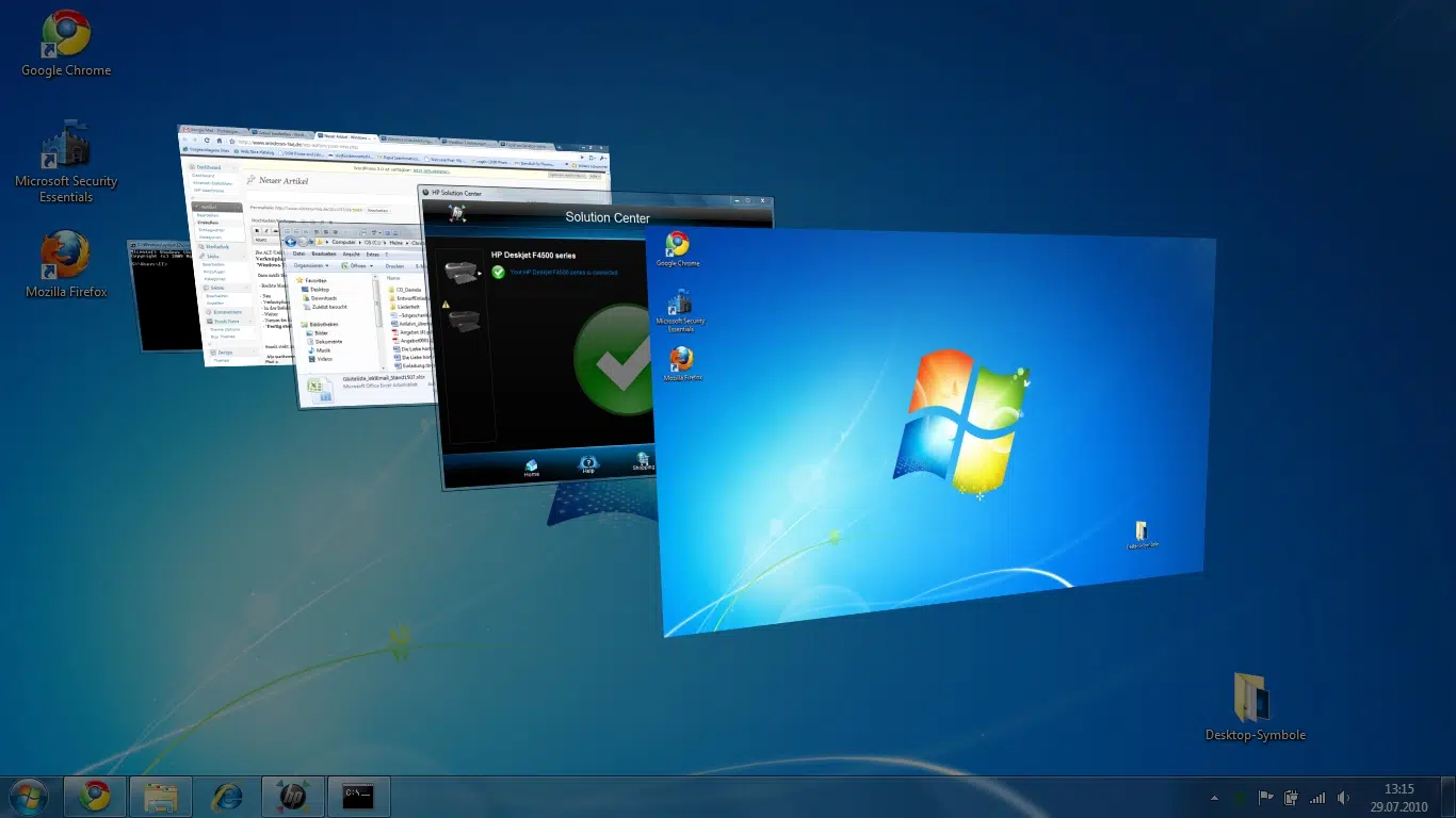 Auch bei Windows 7 ist Flip3D eine hervorragende Funktion, um grafisch zwischen den aktiven Programmen hin- und herzuschalten. Diese Funktion wurde mit Windows Vista eingeführt und ist aus früheren Windows Betriebssystem als ALT-TAB Funkion bekannt.