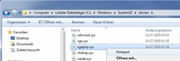 Öffnen von „c:\windows\system32\drivers\vgapnp.sys im Editor