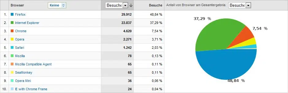 Was? Wie? „Der Internet Explorer liegt bei knapp 38%.“ Ich werd´ein wenig „hetzen“ müssen.