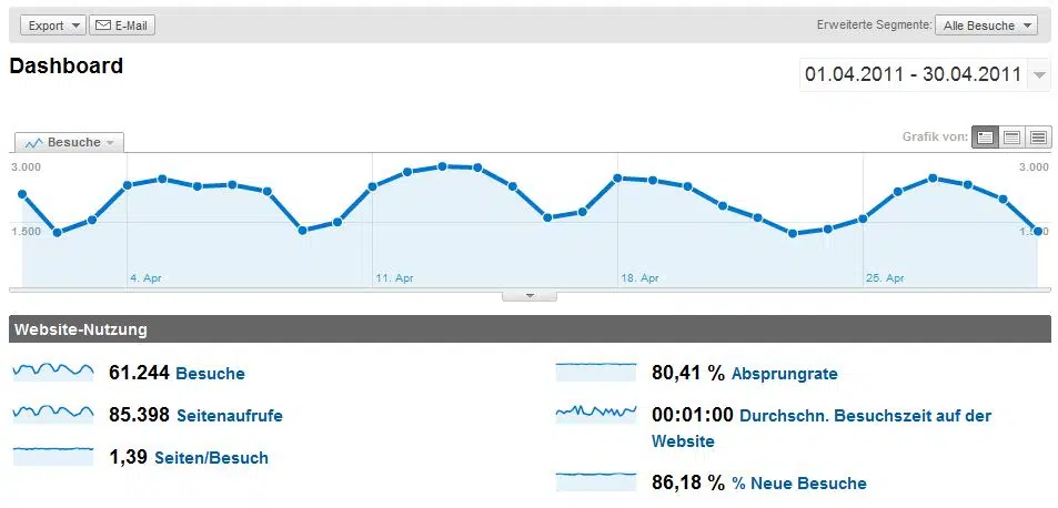 Die Werte beziehen wir aus Google Analytics und die korrekten Werte liegen sehr wahrscheinlich noch um einiges höher, da Google Analytics nur Besucher zählt, die auch Javascript aktiviert haben. Trotzdem hat sich Analytics als Standard etabliert und deswegen nehmen wir ebenfalls diese Zahlen als Basis.