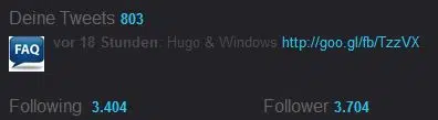 Auch bei Twitter sind wir immer beliebter, wir haben aktuell 3.704Follower.