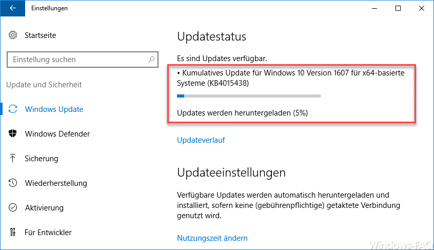 – Kumulatives Update für Windows 10 Version 1607 für x64-based Systems (KB4015438)