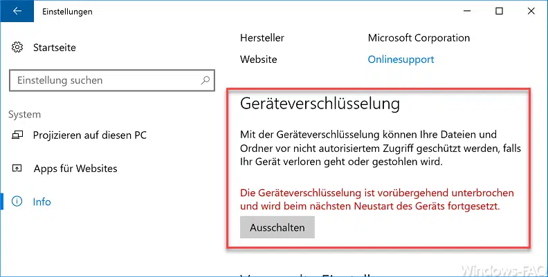 Die Geräteverschlüsselung ist vorübergehend unterbrochen und wird beim nächsten Neustart des Geräts fortgesetzt. -> Ausschalten