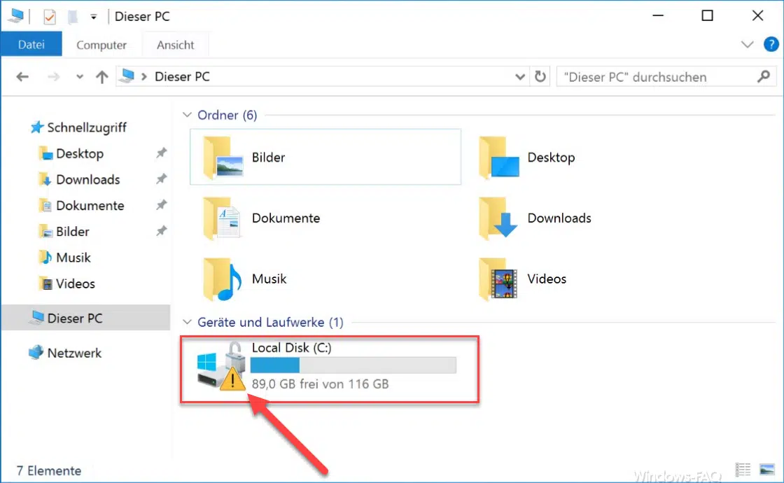Unter bestimmten Voraussetzungen kann es dazu kommen, dass der Windows 10 Explorer bei der Systempartition oder anderen Laufwerken ein „gelbes Ausrufezeichen“ anzeigt, so wie Ihr es hier nachfolgend sehen könnt. Als Hinweis wird auch noch ein geöffnetes Schloss angezeigt, welches dann auch den Hinweis für die Lösung des Problems gibt.