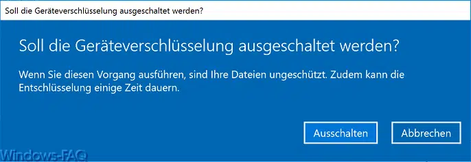 Soll die Geräteverschlüsselung ausgeschaltet werden?