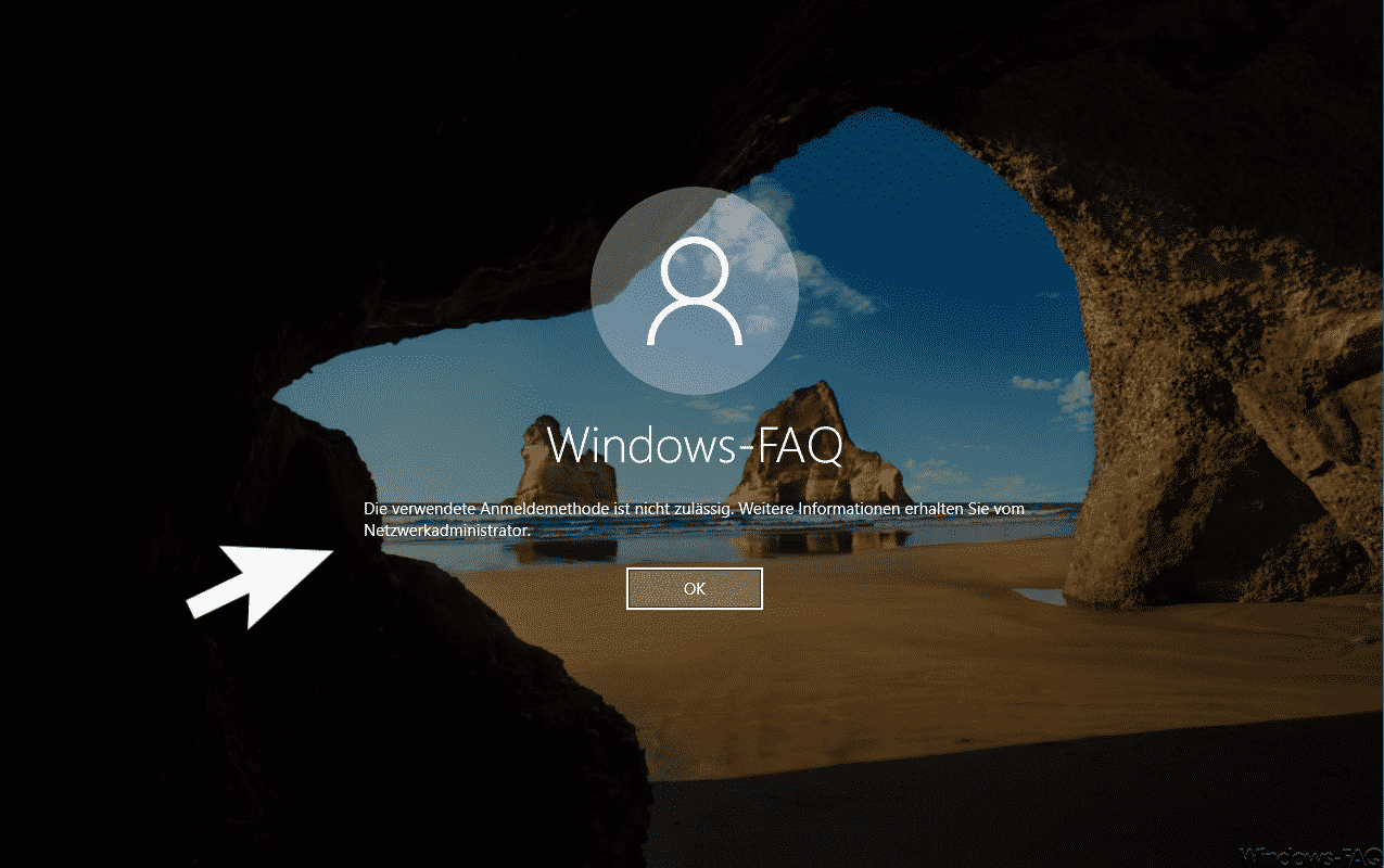 Nach einem Neustart wird die GPO dann auch aktiv. Sollte sich nun ein User lokal anmelden, dann erscheint folgende Meldung.