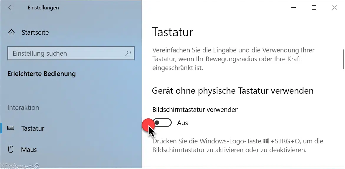 Bildschirmtastatur ausschalten über Windows 10 Einstellungen