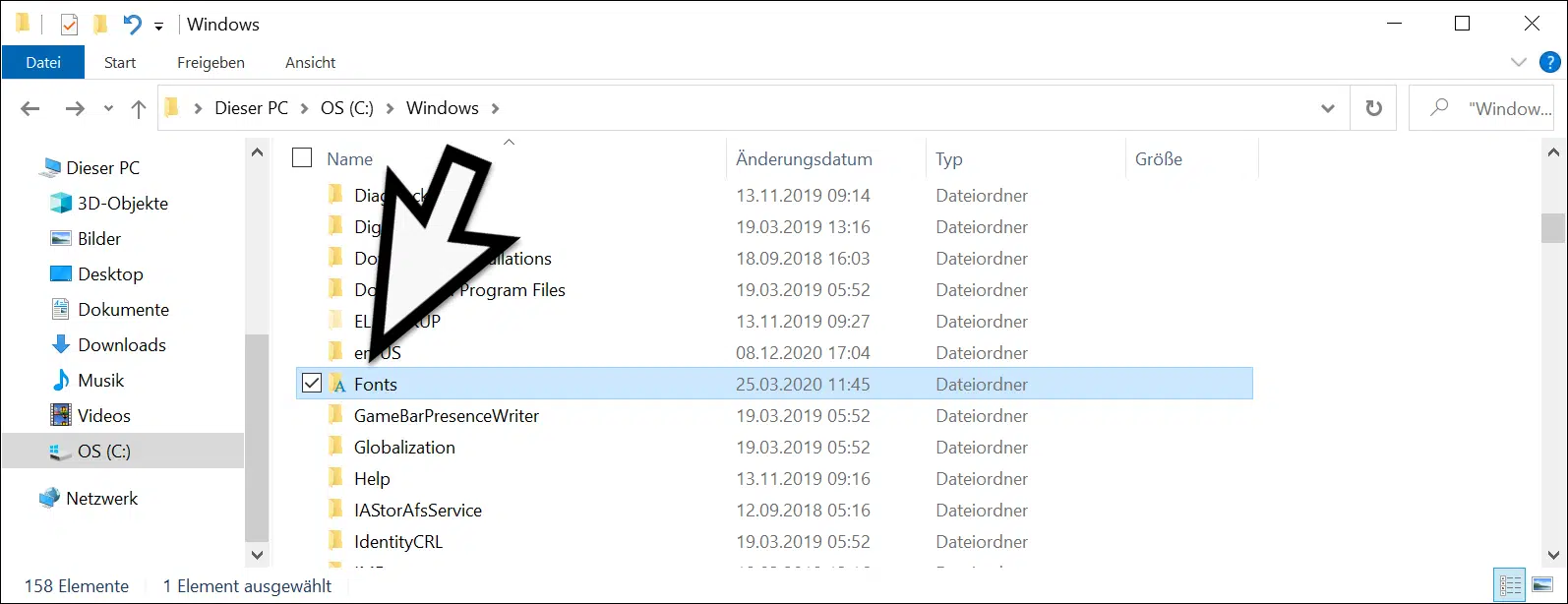 Diese Frage ist sehr einfach zu beantworten, denn Ihr findet die Windows Schriftarten im Ordner