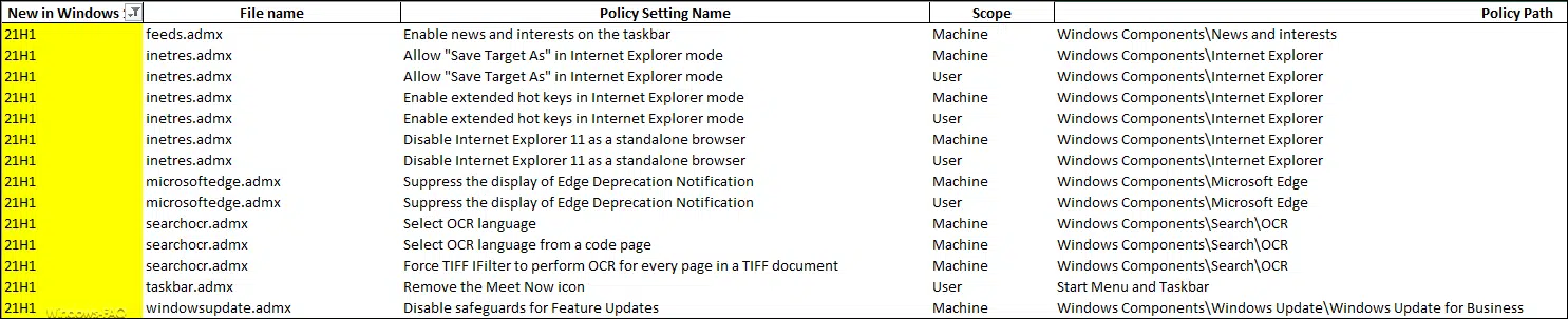 Wenn Ihr weitergehende Informationen zu den 21H1 GPOs bzw. zu allen Windows Gruppenrichtlinien erhalten möchtet, so solltet Ihr Euch die Microsoft Excel-Datei mit allen Windows Gruppenrichtlinen von der Webseite „Download Group Policy Settings Reference Spreadsheet for Windows 10 May 2021 Update (21H1) from Official Microsoft Download Center“ herunterladen.