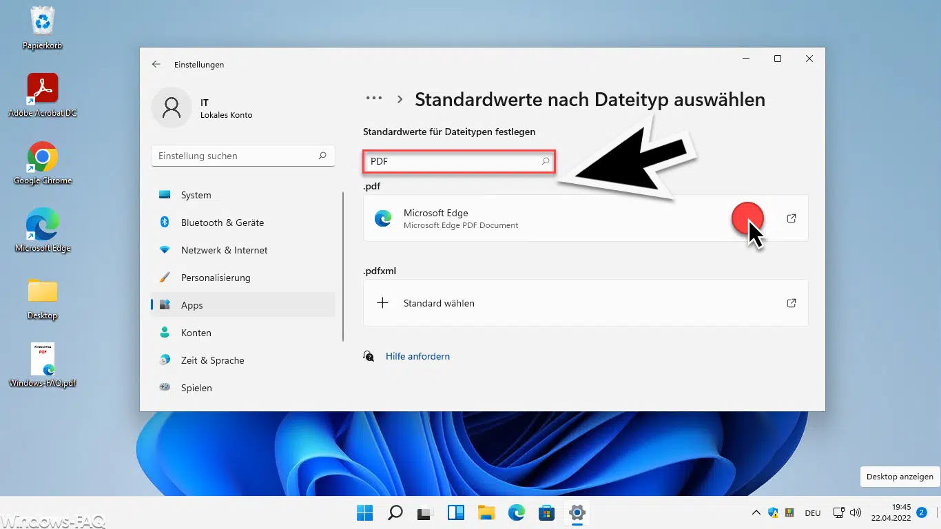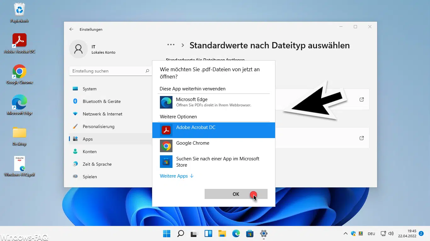 Anschließend zeigt Windows 11 das aktuelle Standard-PDF Programm an, in der Regel steht hier die Windows 11 Standardeinstellungen