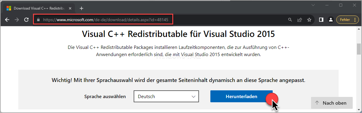 – Download Visual C++ Redistributable für Visual Studio 2015