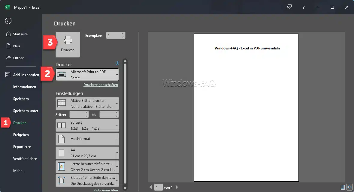 Excel in PDF umwandeln mit dem Microsoft Print to PDF Drucker