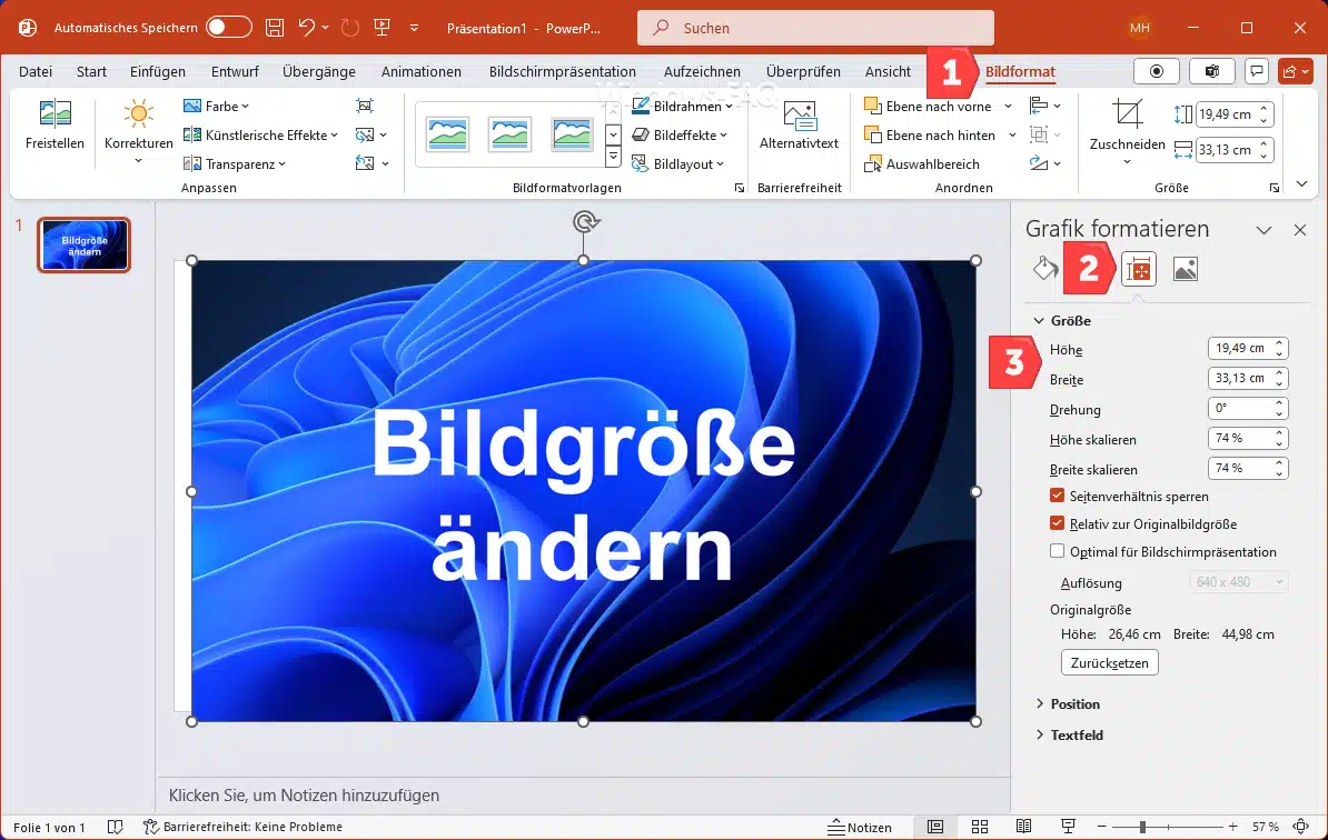 - Präzise Größenanpassung: Du kannst die genaue Größe des Bildes in PowerPoint angeben.
