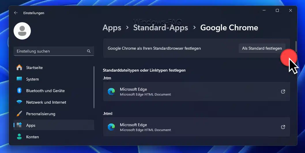 Mit diesen Schritten können Sie den Edge als auch Google als Standardbrowser festlegen.