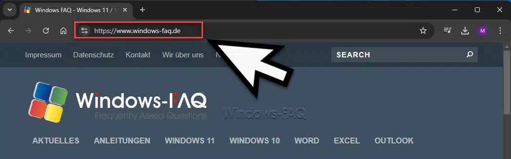 - Sie geben eine Internetadresse (URL) wie „www.windows-faq.de“ in die Adressleiste Ihres Browsers ein.