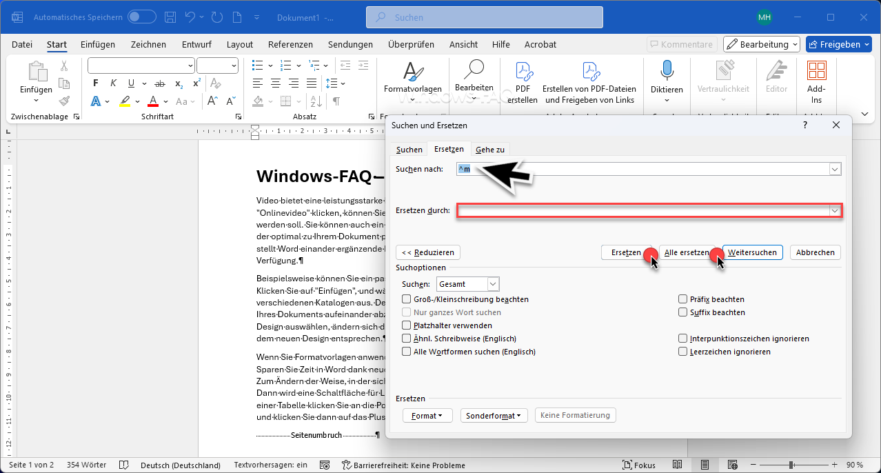 3. Seitenumbrüche mit der Suchen- und Ersetzen-Funktion entfernen