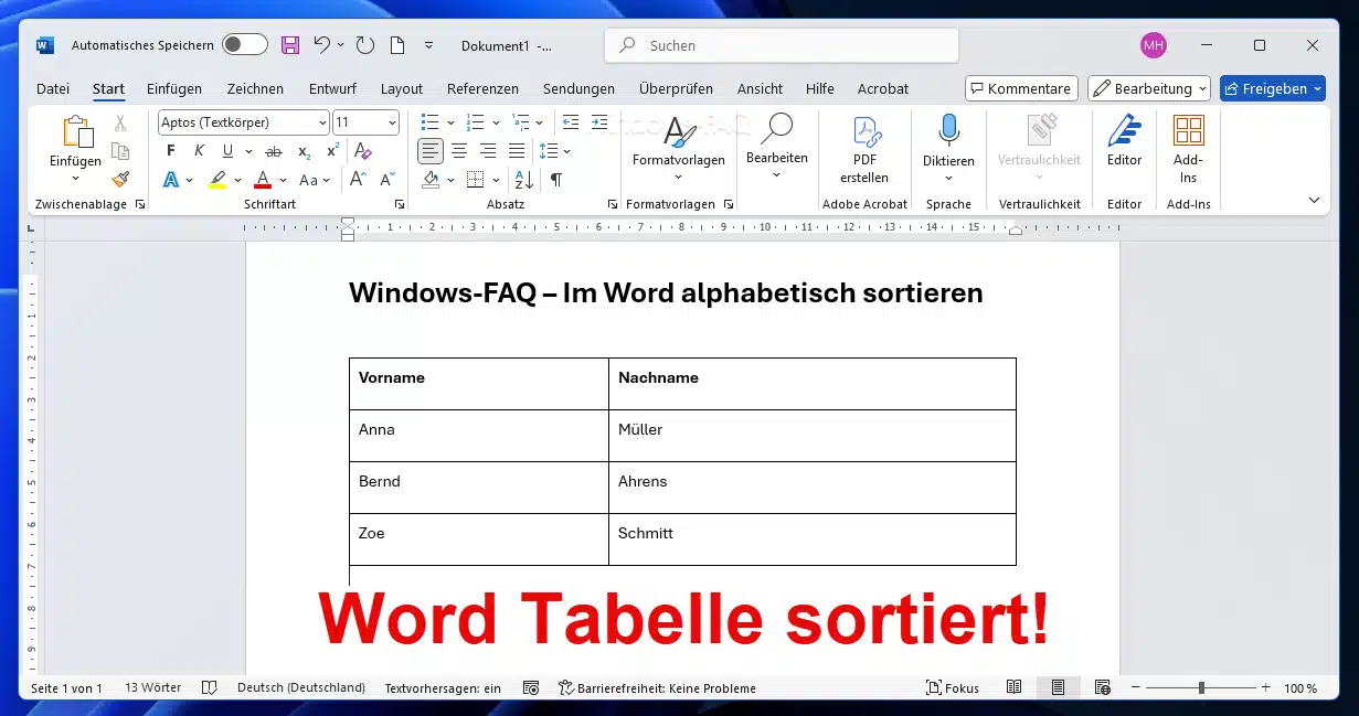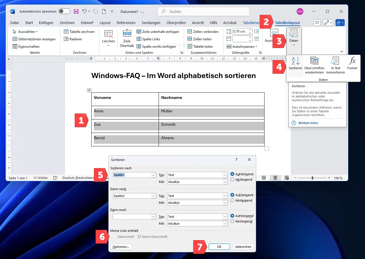 Word Tabelle alphabetisch sortieren