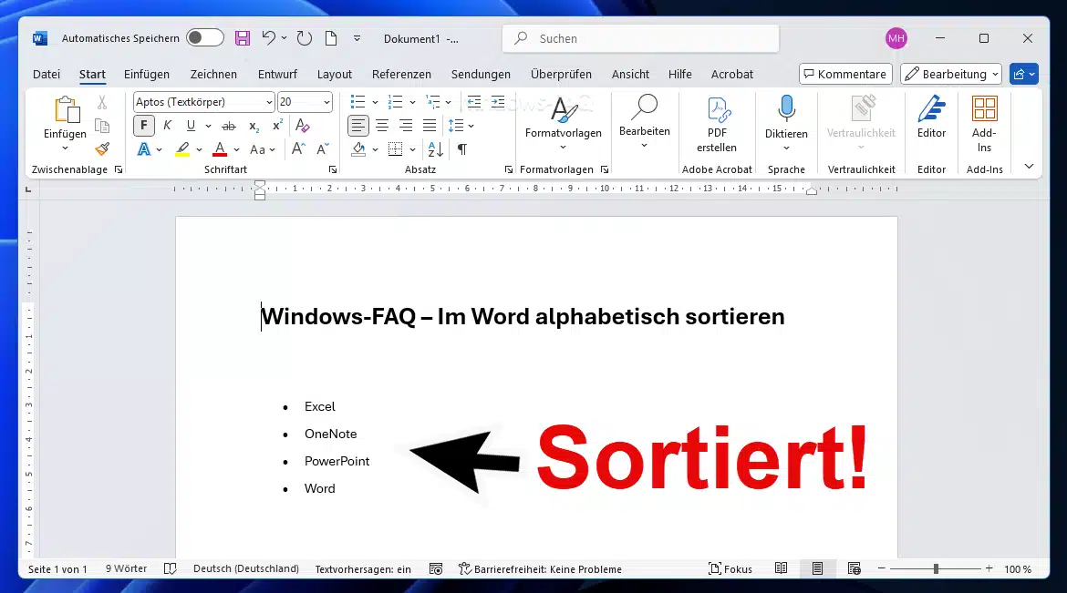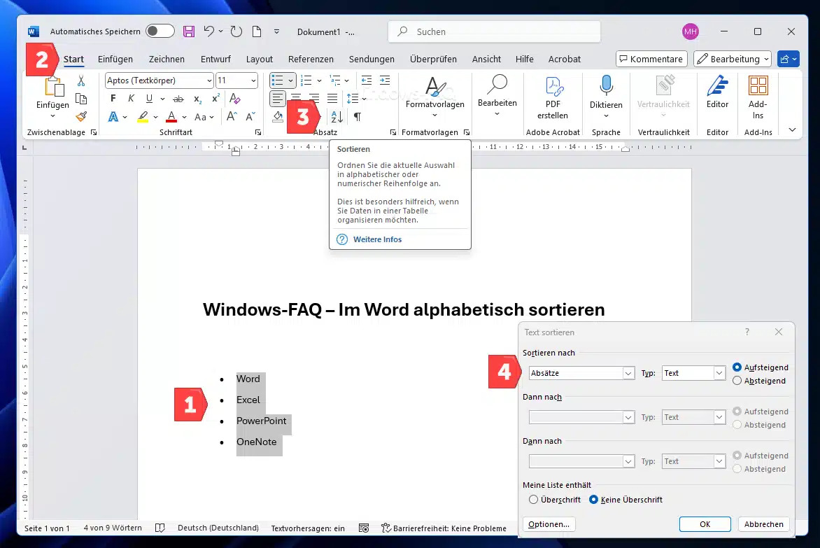 Text in Word alphabetisch sortieren (Listen alphabetisch ordnen)