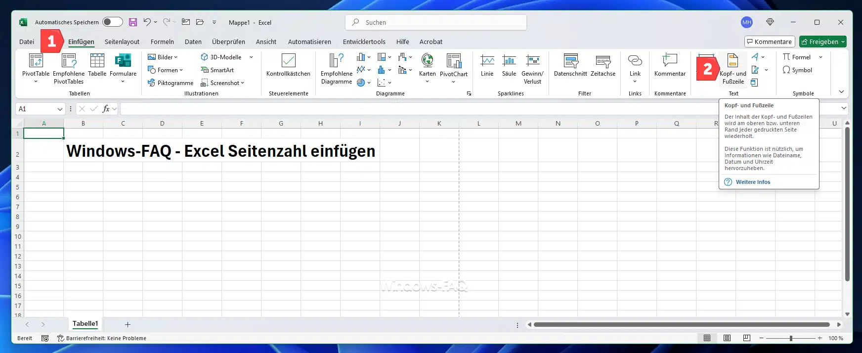 Um Seitenzahlen in Excel hinzuzufügen, nutzt man die Kopf‑ und Fußzeilen. Dabei lässt sich die Nummerierung frei positionieren.