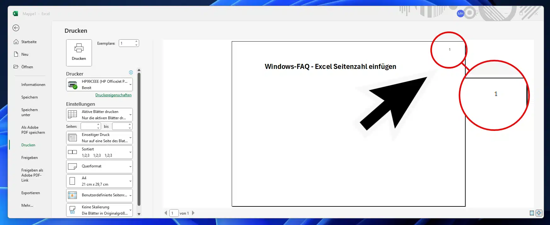 - In der Druckvorschau wird das als „Seite 1 von 3“ usw. angezeigt.