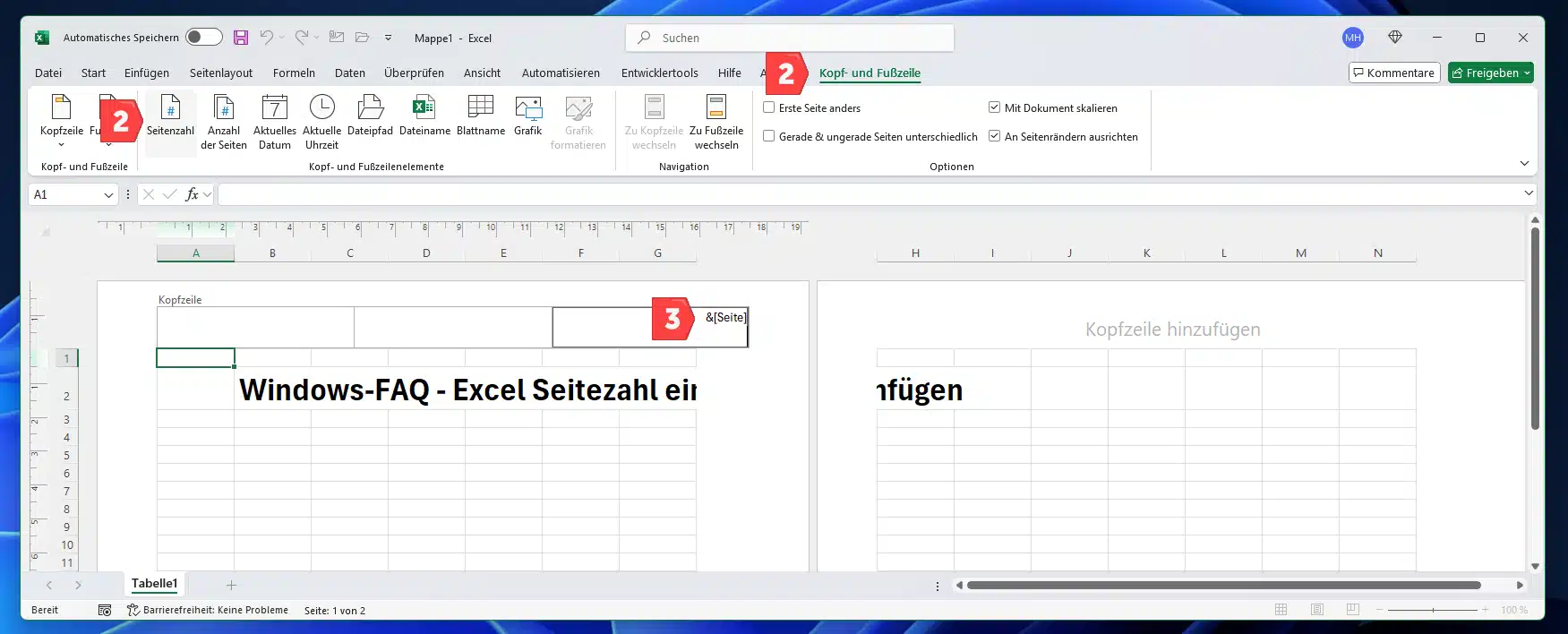 Seitenzahlen über Kopf- und Fußzeilen einfügen