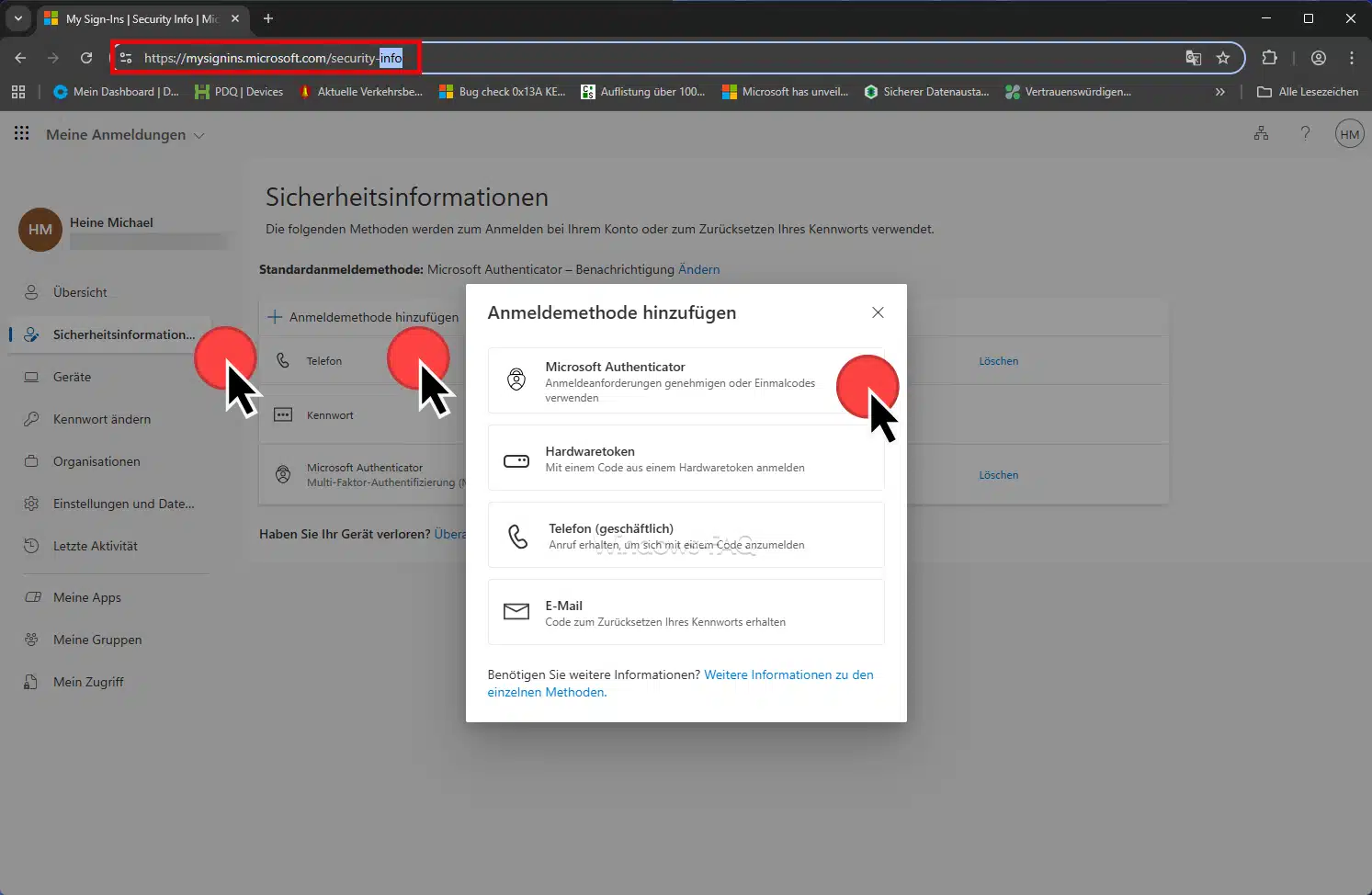 - Öffne https://mysignins.microsoft.com/security-info.