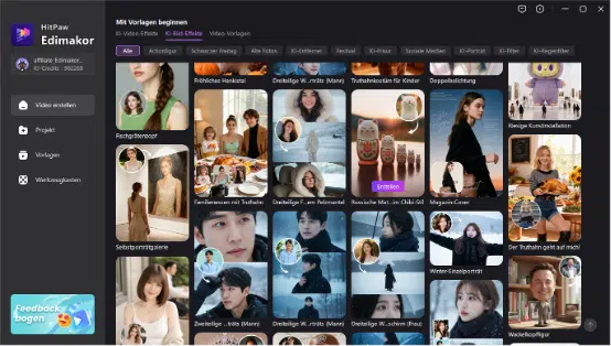 Damit Ihre Bilder nicht nur „gut“, sondern wirklich beeindruckend werden, lohnt sich ein kurzer Blick auf bewährte Workflows. Edimakor stellt Ihnen über 50 trendige Social-Media-Templates im Bereich KI-Bild bereit – etwa Effekte wie „alte Fotos zum Leben erwecken“, festliche Motive oder stylisierte Porträts. Diese Vorlagen sind eine schnelle Basis, wenn Sie mit wenigen Klicks trendige Visuals erstellen möchten.