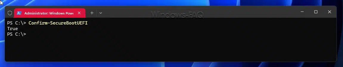 Zeigt Dir der Befehl als Ergebnis „True“ an, so ist auf Deinem PC Secure Boot aktiv.