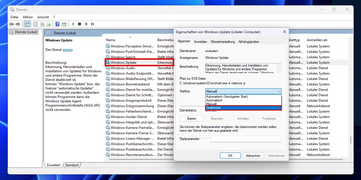 Windows Update Dienst deaktivieren (Alternative Methode)