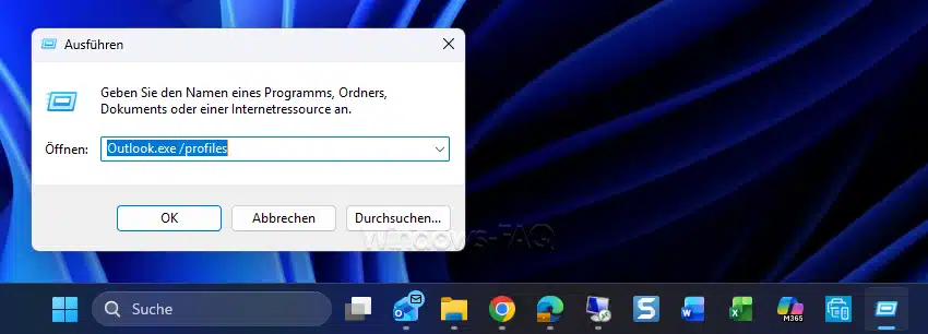 - Gib „Outlook.exe /profiles“ ein
