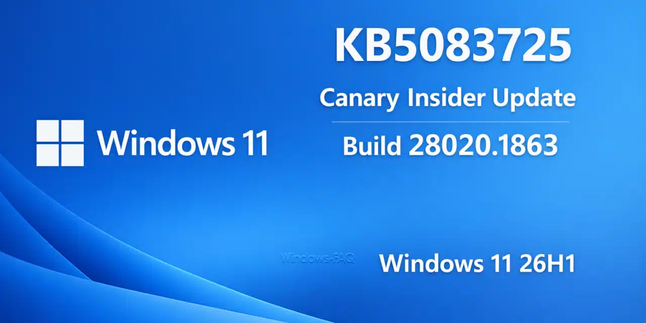 KB5083725 ist ein Windows 11 Insider Update für den Canary Kanal. Es hebt die Version auf Build 28020.1863 an und enthält vor allem kleinere Verbesserungen und Fehlerbehebungen.