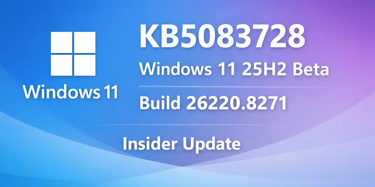 KB5083728 ist ein Windows 11 Insider Update für den Beta Kanal. Es aktualisiert Windows 11 Version 25H2 auf Build 26220.8271.