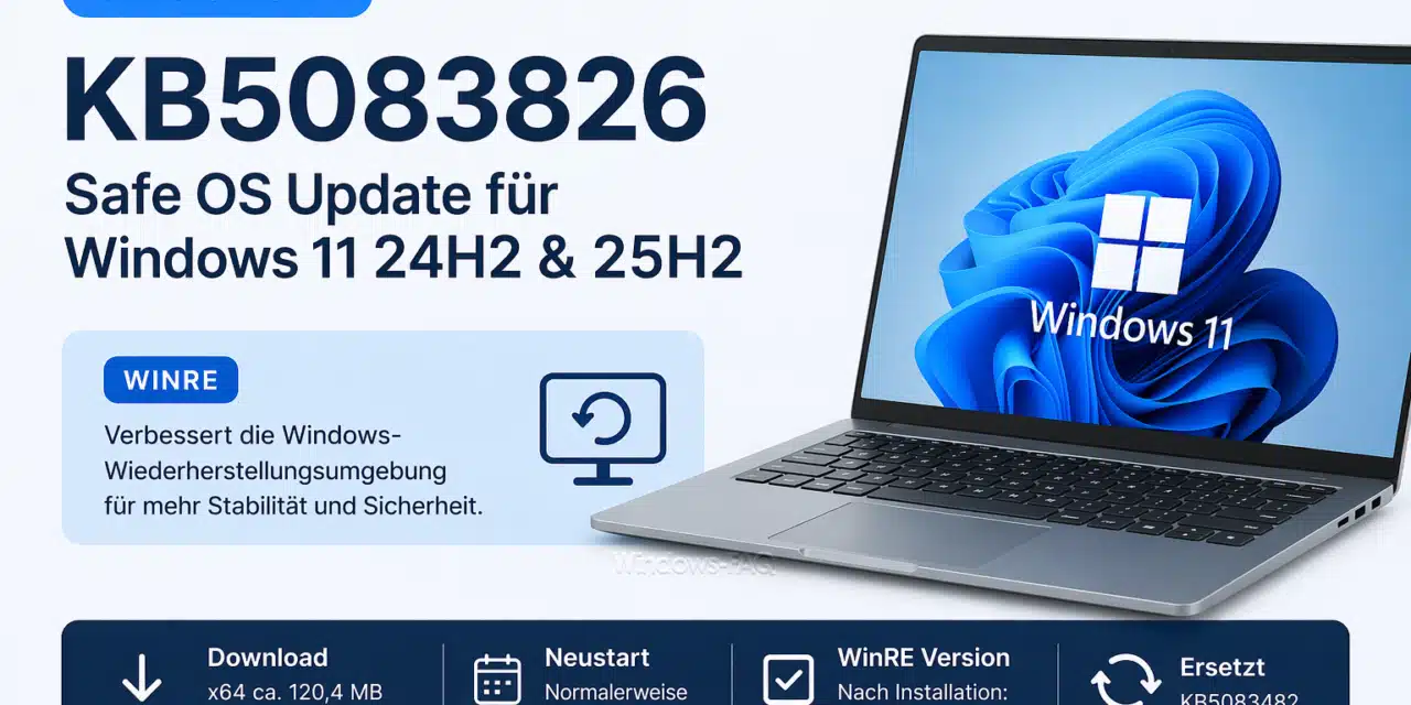 KB5083826 ist ein Safe OS Dynamic Update für Windows 11 24H2 und 25H2. Es verbessert die Windows Wiederherstellungsumgebung WinRE.