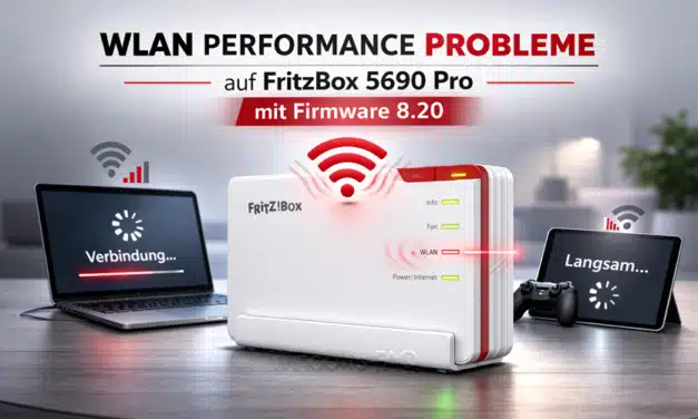 Wenn dein WLAN seit dem Update auf FRITZ!OS 8.20 auf einer FRITZ!Box 5690 Pro plötzlich „zickt“, bist du gerade nicht allein. Viele beschreiben das Problem so: Am Anfang wirkt alles normal, dann wird das WLAN zäh. Speedtests fallen deutlich schlechter aus als vorher, Streams puffern, Downloads tröpfeln und beim Gaming steigen Ping und Paketverluste. Besonders fies ist, dass sich das Ganze wie ein reines WLAN Problem anfühlt, obwohl die Ursache oft tiefer sitzt.